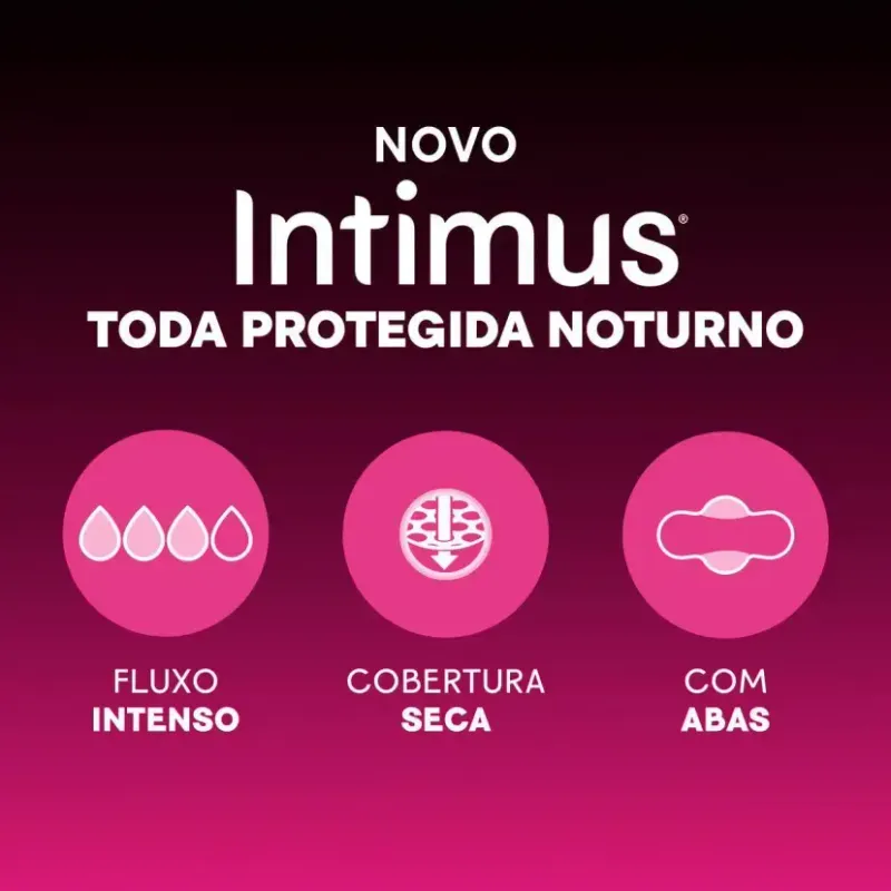 O Absorvente Intimus Noturno Toda Protegida Cobertura Seca Com Abas é o seu aliado para uma noite tranquila e sem vazamentos. Trata-se de um absorvente externo com abas, com formato anatômico e mais longo (em comparação à versão regular do produto), ajudando você a ficar seca, confortável e protegida enquanto dorme.