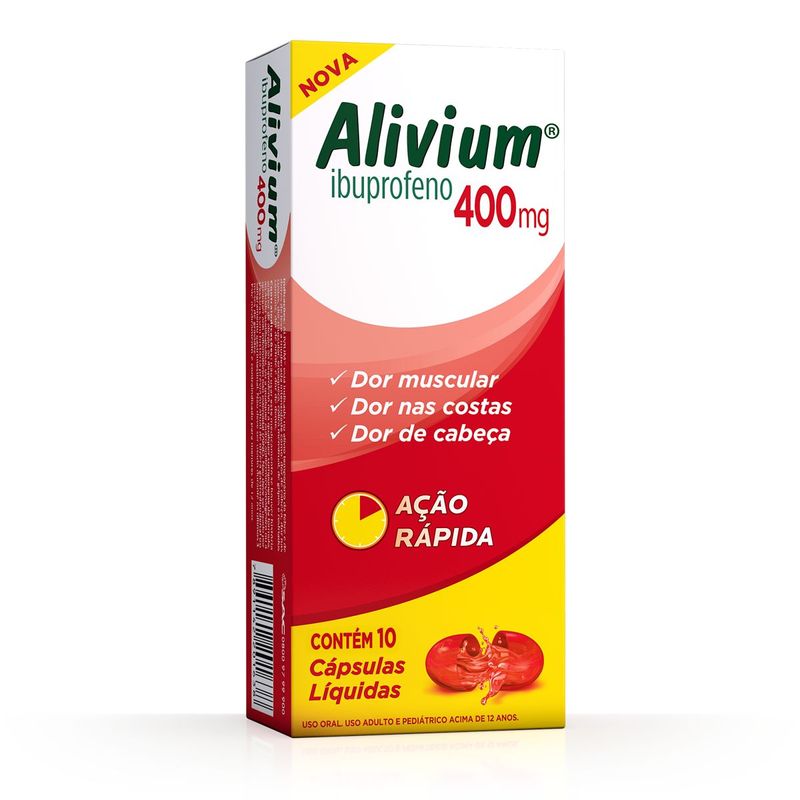 Alivium® traz o ibuprofeno na inovadora cápsula mole (cápsula líquida), onde o analgésico encontra-se na forma líquida no interior de uma cápsula mole, proporcionando início de ação mais rápido.