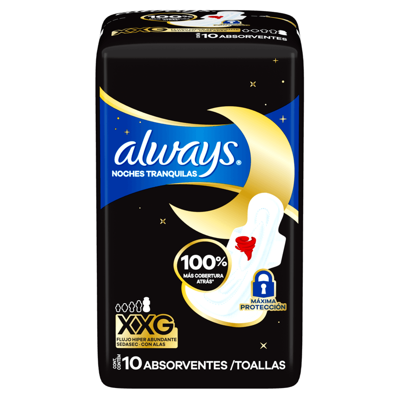 Beleza e Cuidados PessoaisHigiene ÍntimaAbsorventesAbasAlways Absorvente Noites Tranquilas Cobertura Seca Hiper Longo X 10