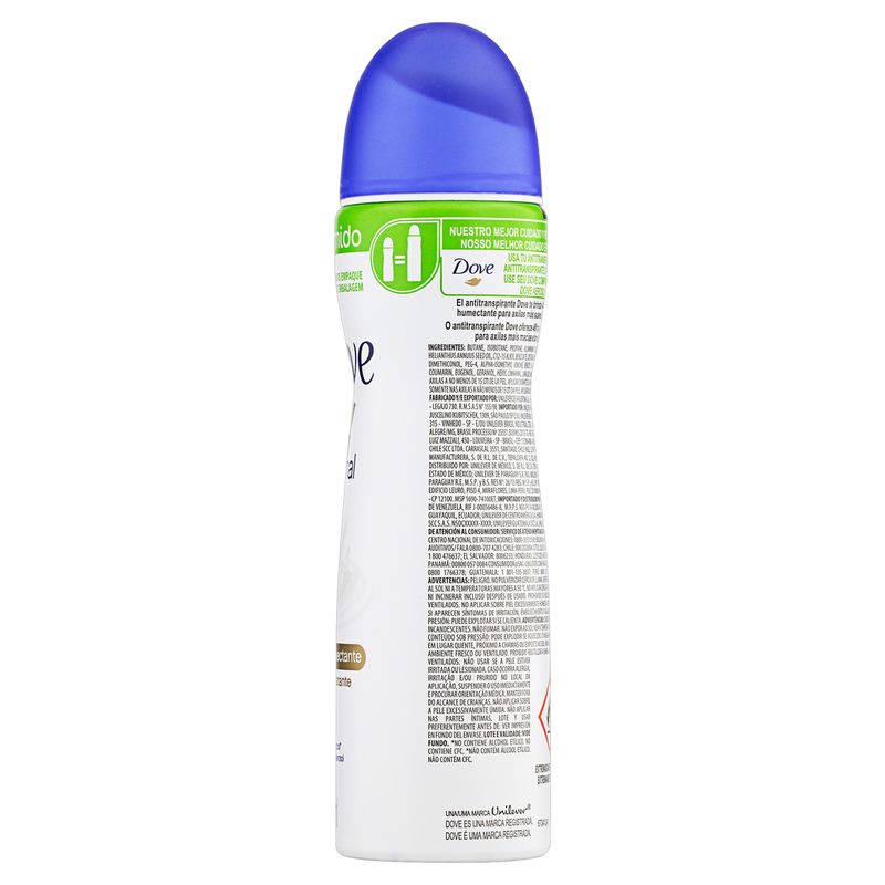 O Desodorante Antitranspirante Aerossol Dove Original possui uma avançada fórmula com 0% de álcool etílico e tecnologia com 1/4 de creme hidratante, proporcionando até 48 horas proteção contra o suor. Combina ingredientes que ajudam a proteger a pele, potentes contra o suor, mas que não irritam a sua pele, o resultado é proteção e cuidado completos e duradouros. Dermatologicamente testado e sem álcool.