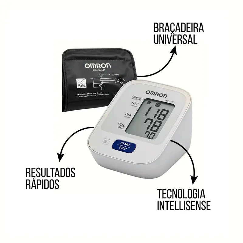 O Control+ HEM-7122 é o primeiro monitor de pressão arterial de braço Omron fabricado no Brasil. Ele fornece resultados rápidos e confiáveis para a aferição de pressão arterial em casa, utilizando o método oscilométrico.