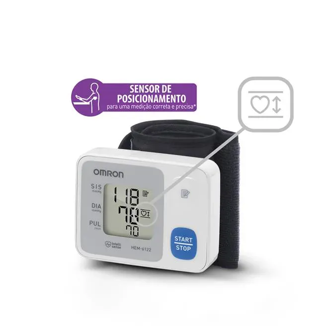 Com uma braçadeira que se adapta facilmente a diferentes tamanhos de pulso, o medidor Omron Control HEM-6124 conta com exclusivo sensor para o correto posicionamento antes da aferição, além de armazenar as 30 últimas leituras, permitindo que o usuário acompanhe e monitore os resultados mais facilmente.