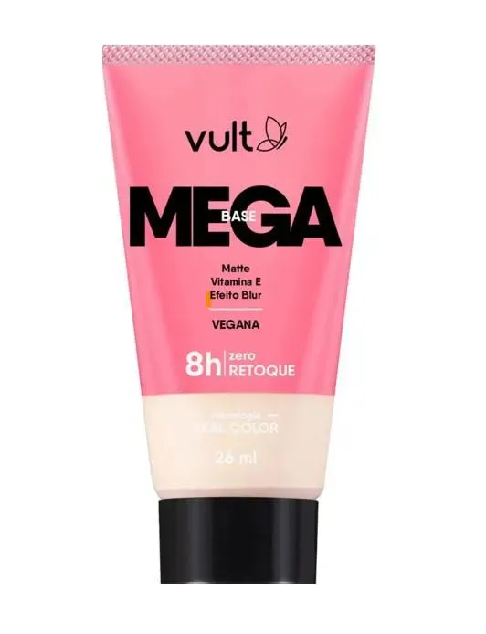 Base Líquida Vult Make Mega Base proporciona efeito matte aveludado, oferecendo 8 horas de make sem retoques. A Base Líquida Vult Make Mega Base foi desenvolvida com Tecnologia Real Color, que apresenta cores reais para peles reais, garantindo alta pigmentação e tons fiéis da embalagem para sua pele. Com acabamento construível, sua fórmula é vegana, cruelty free e enriquecida com Vitamina E, deixando seu rosto com aspecto uniforme e com longa duração.Vitamina E: possui poderosa ação antioxidante, auxiliando na prevenção do envelhecimento precoce da pele.