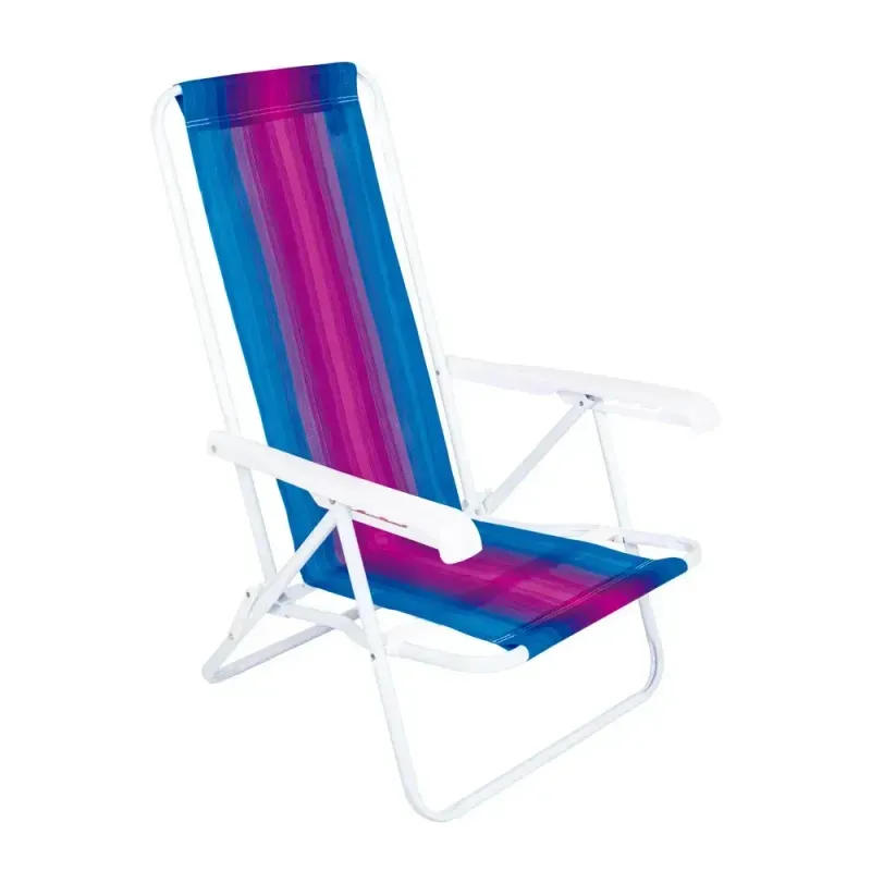 A Cadeira de Praia de Aço Mor 4 Posições é a definição de relaxamento inteligente e adaptável. Projetada para se ajustar perfeitamente ao seu momento de lazer, ela oferece um sistema de regulagem de quatro posições no encosto, permitindo que você escolha desde uma postura ereta para conversas até uma inclinação total para descanso profundo.