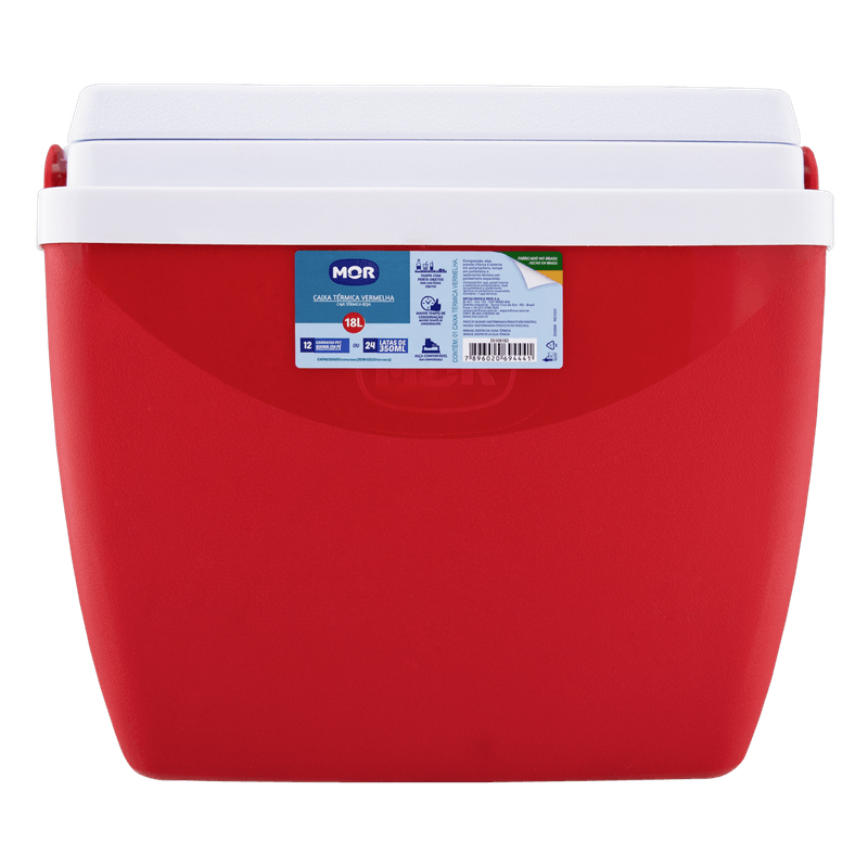 A Caixa Térmica Mor de 18 litros na cor vermelha é a combinação perfeita de eficiência, durabilidade e estilo para seus momentos de lazer. Produzida com orgulho no Brasil, em Santa Cruz do Sul (RS), sua construção emprega materiais de alta qualidade: a parte interna e externa em polipropileno injetado, a tampa em polietileno e o isolamento térmico em poliestireno expandido trabalham em conjunto para manter a temperatura ideal por horas. Fabricada com material 100% virgem, atóxico e livre de odores, ela garante a segurança e a frescor dos seus alimentos e bebidas.