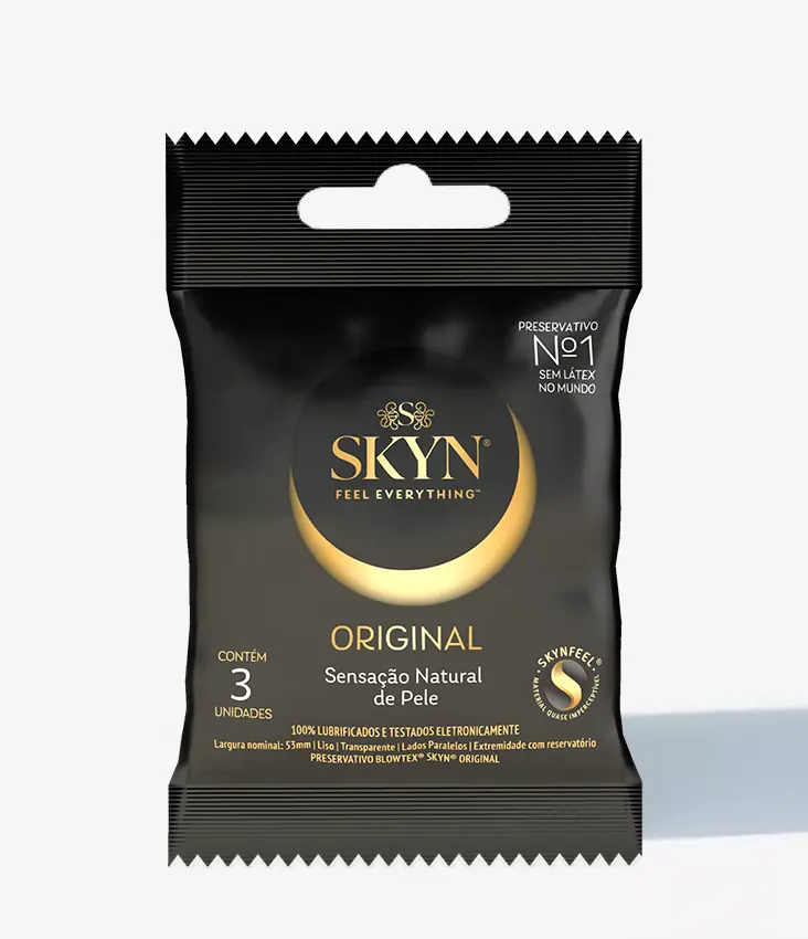 A Skyn Original Sensação Natural é uma camisinha masculina da Blowtex desenvolvida com SKYNFEEL®, um material sem látex tecnologicamente avançado e comprovadamente conhecido por aumentar o estímulo e a sensação de pele com a pele.