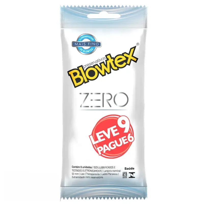 Preservativo Blowtex Zero Leve 9 Pague 6 é composto por látex natural e lubrificante à base de silicone.