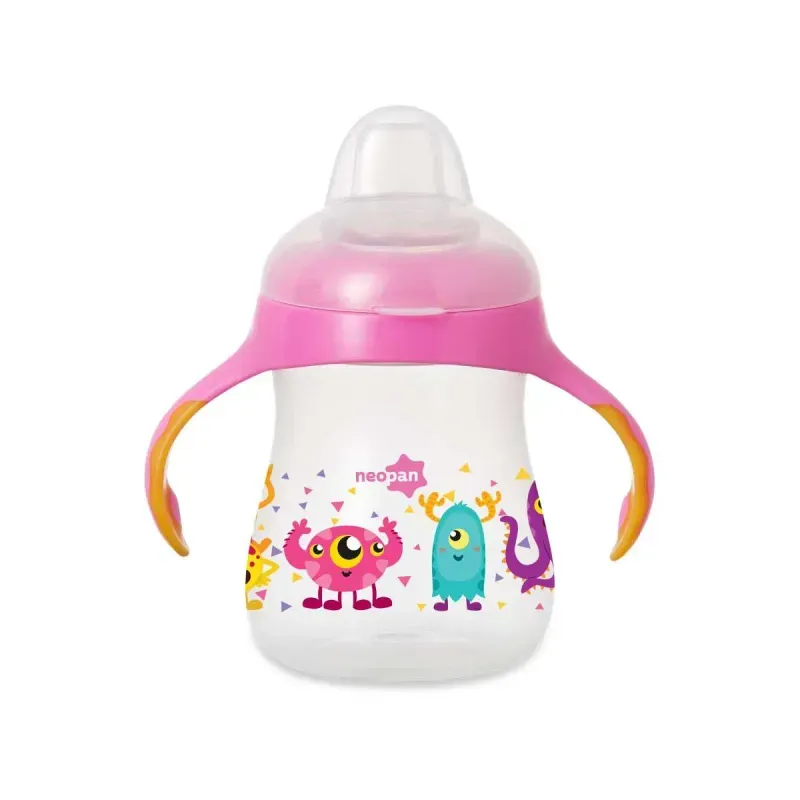 A caneca bicolor é atóxica e não tem cheiro. Possui gargalo sem abas cortantes para facilitar a limpeza e evitar o acúmulo de resíduos. O bico de silicone é macio e as alças são emborrachadas para maior aderência nas mãozinhas pequenas da criança.