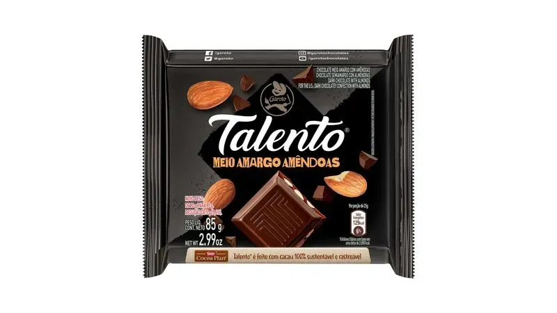 ConveniênciaChocolates e AchocolatadosChocolate Talento Meio Amargo Amêndoas 85g