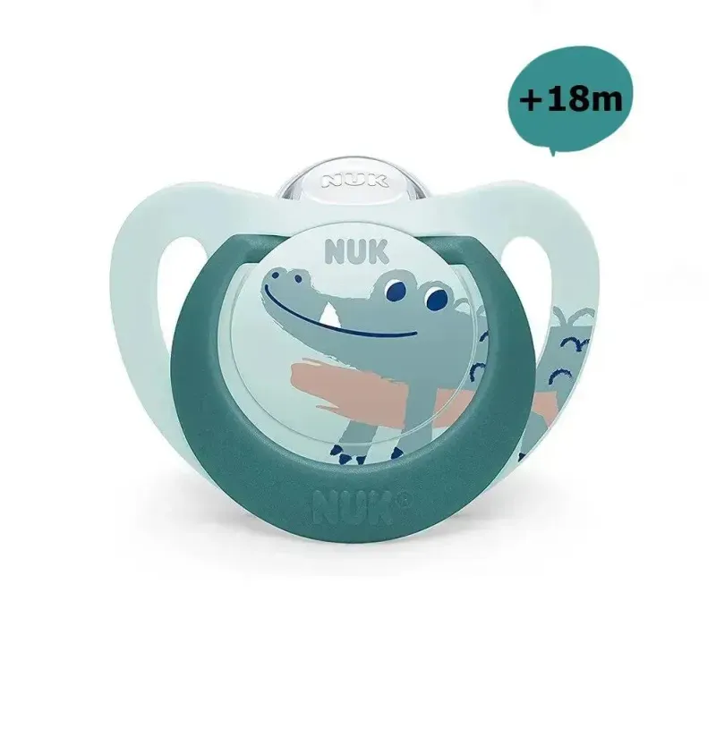 A Chupeta NUK Star Nuk (0+6M) é prática e eficiente, com até 99% de aceitação dos bebês. Sua base é angular e garante um posicionamento ideal para a lígua, contando com bico Oral Fit 2.0 que é 45% mais suave, 9% mais estreito e 35% mais fino que os bicos convencionais. Seu formato original NUK é redondo na parte superior e plano na parte inferior, deixando espaço para movimentos com ritmo natural de sucção e melhor encaixando na boca do bebê. O topo aninha-se suavemente ao palato, e a região inferior deixa espaço para sucção da língua. Quase nenhuma pressão é exercida nos dentes ou mandíbula, de modo que seu desenvolvimento dificilmente é afetado, segundo análise de ortodontistas. Sua pega adequada é de fácil alternância entre a mama e chupeta, evitando confusão de bico.