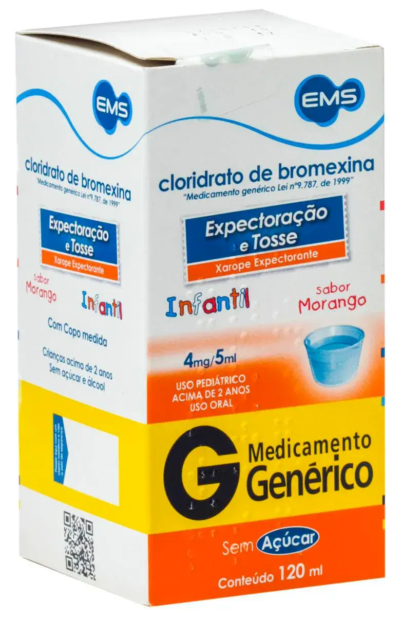 Cloridrato de Bromexina 4mg Xarope Infantil Sabor Morango 120ml EMS Genérico