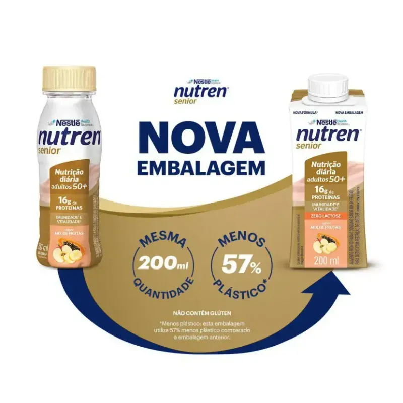 O Nutren Senior é uma bebida pronta pra consumo de forma prática e fácil. Formulado para adultos, é recomendado para complementar a alimentação de uma forma geral ou auxiliar no tratamento de quadros clínicos como caquexia (perda de tecido adiposo e músculo ósseo), desnutrição e osteoporose (ossos frágeis e com maior risco de fraturas). Com proteínas (16g/unid), cálcio, vitamina D e outros nutrientes essenciais, sem lactose. No sabor Mix de Frutas.