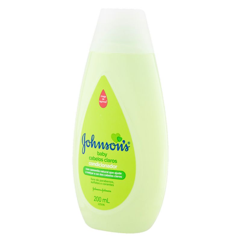 Condicionador Johnson's Baby Cabelos Claros 200mlO Condicionador JOHNSON’S Cabelos Claros cuida do couro cabeludo para que o cabelo cresça mais saudável. Sua fórmula contém camomila, ingrediente natural que realça a cor dos cabelos claros.• Com camomila natural.• Deixa os cabelos delicados do bebê macios e sedosos.• Hipoalergênico, formulado para ser suave.• Livre de corantes, parabenos, sulfatos e ftalatos.• pH fisiológico.• Testado por dermatologistas.Disponível em: 200mLModo de Uso:Depois de usar o baby shampoo JOHNSON’S®  Cabelos Claros, aplique o condicionador nos cabelos molhados, massageando-os suavemente. Deixe agir por alguns instantes e, em seguida, enxágue bem. Adequado para o uso diário.Para bebês (6 a 18 meses).Composição: Aqua, Cetearyl Alcohol, Glycerin, Hydroxyethylcellulose, Cetyl Esters, Sodium Benzoate, Behentrimonium Chloride, Parfum, Cetrimonium Chloride, Citric Acid
