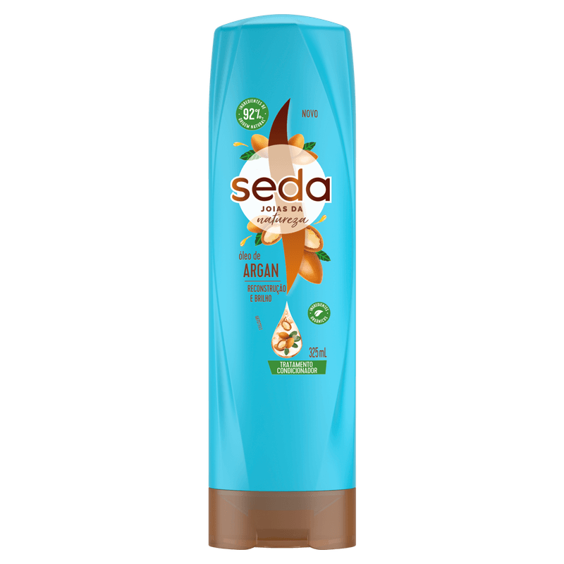 O condicionador Seda Bomba Argan tem fórmula exclusiva, com todo o poder do óleo de Argan do Marrocos, que penetra no cabelo restaurando seu brilho e suavidade desde a primeira lavagem.Coloque o Condicionador Seda Bomba Argan 325ml nas mãos e aplique-o diretamente nos cabelos molhados após utilizar o shampoo. Espalhe por toda extensão dos fios, concentrando mais nas pontas. Deixe agir por alguns instantes e enxágue.  *Imagem meramente ilustrativa. A embalagem está sendo atualizada pelo fabricante, você poderá receber uma embalagem diferente da imagem.