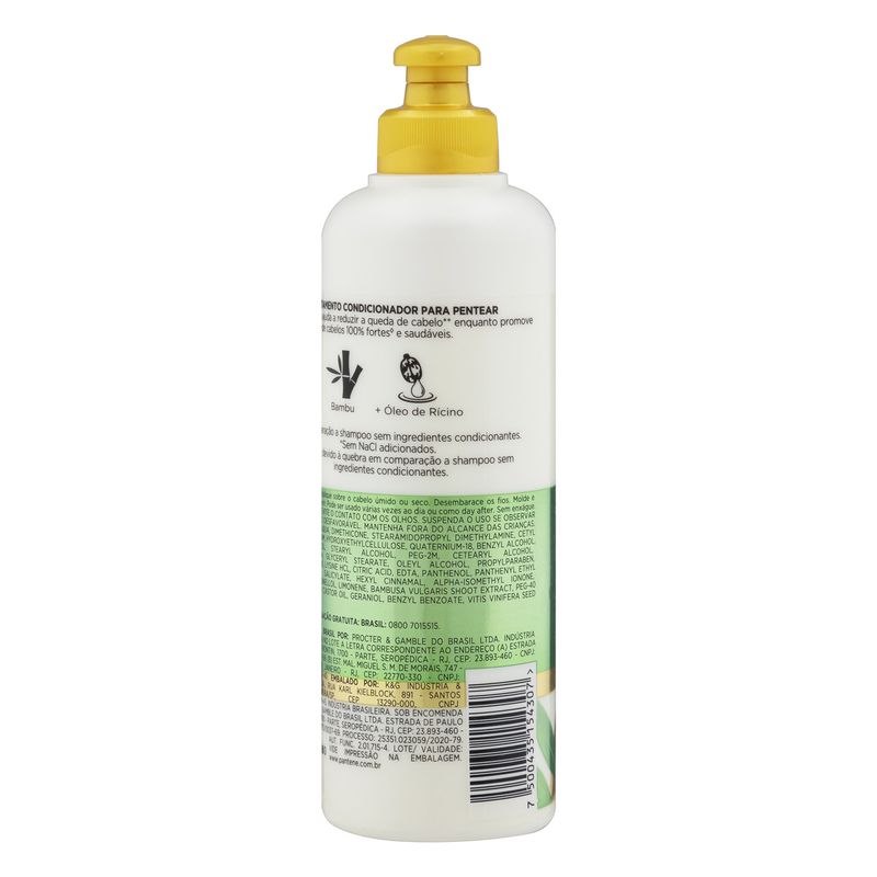 A coleção Pantene Bambu Nutre e Cresce foi criada para ajudar no ciclo da quebra de cabelo, nutrindo desde as raízes, para o cabelo crescer mais forte. Creme para pentear Bambu um tratamento profundo com uma formulação leve sem enxágue, contém extrato de bambu e óleo de rícino para pontas danificadas. Ajuda a desembaraçar para evitar a necessidade de cortar seu cabelo. Esse produto contém 0% de sulfatos e óleo mineral. O poder de combate à quebra de Pantene Bambu está disponível em produtos de toda a linha, shampoo, condicionador, creme para pentear, máscara nutritiva. Agora, você pode combater a quebra porque um Cabelo Pantene diz meu crescimento não tem limites!  ·         Tratamento profundo com uma formulação leve sem enxágue ·         Desembaraça para evitar a necessidade de cortar seu cabelo ·         Crie seu estilo com confiança ·         Com extrato de bambu, óleo de rícino e cafeína ·         O bambu é mais forte que madeira, concreto e aço e pode ser flexível com o vento, sem quebrar ·         O óleo de rícino, que é rico em ômega 9, tem poder hidratante e pH balanceado ·         A cafeína, conhecida por promover regeneração celular, também melhora a circulação sanguínea  Modo de uso: Aplique sobre o cabelo úmido ou seco. Desembarace os fios. Molde e estilize como preferir. Pode ser usado várias vezes ao dia ou como day after. Sem enxágue.#html-body [data-pb-style="646BA65C8D099"]{justify-content: flex-start; display: flex; flex-direction: column; background-position: left top; background-size: cover; background-repeat: no-repeat; background-attachment: scroll; border-style: none; border-width: 1px; border-radius: 0px; margin: 0px 0px 10px; padding: 10px;}#html-body [data-pb-style="646BA65C8D0AF"]{border-style: none; border-width: 1px; border-radius: 0px; margin: 0px; padding: 0px;}