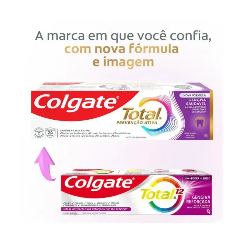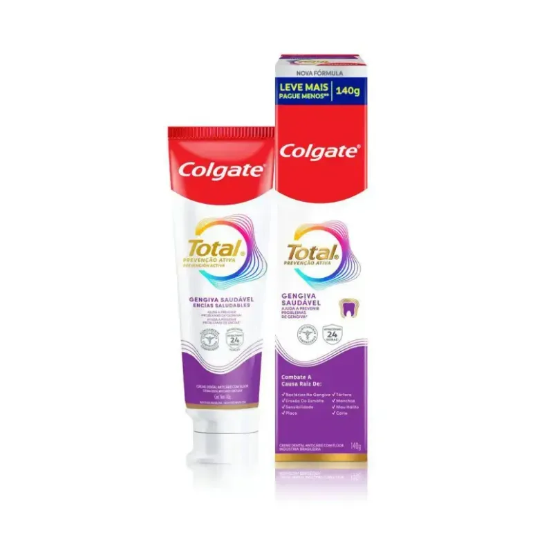 Colgate Total Prevenção Ativa Gengiva Saudável é um creme dental que ajuda a prevenir problemas gengivais causados por bactérias, ao mesmo tempo que, com o uso contínuo, cuida da saúde bucal de forma completa.