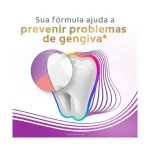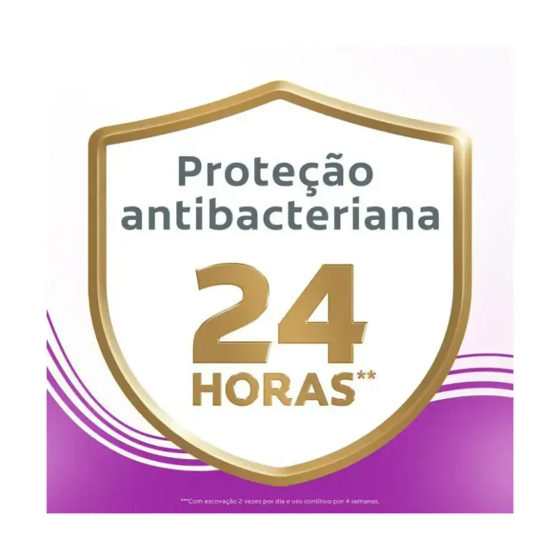 Enriquecido com flúor, ele ajuda a prevenir problemas de gengiva, oferece 24 horas de proteção antibacteriana e ajuda a prevenir problemas bucais antes que apareçam: erosão do esmalte, sensibilidade dentária, placa bacteriana, tártaro dental, manchas nos dentes, mau hálito e cárie dental.