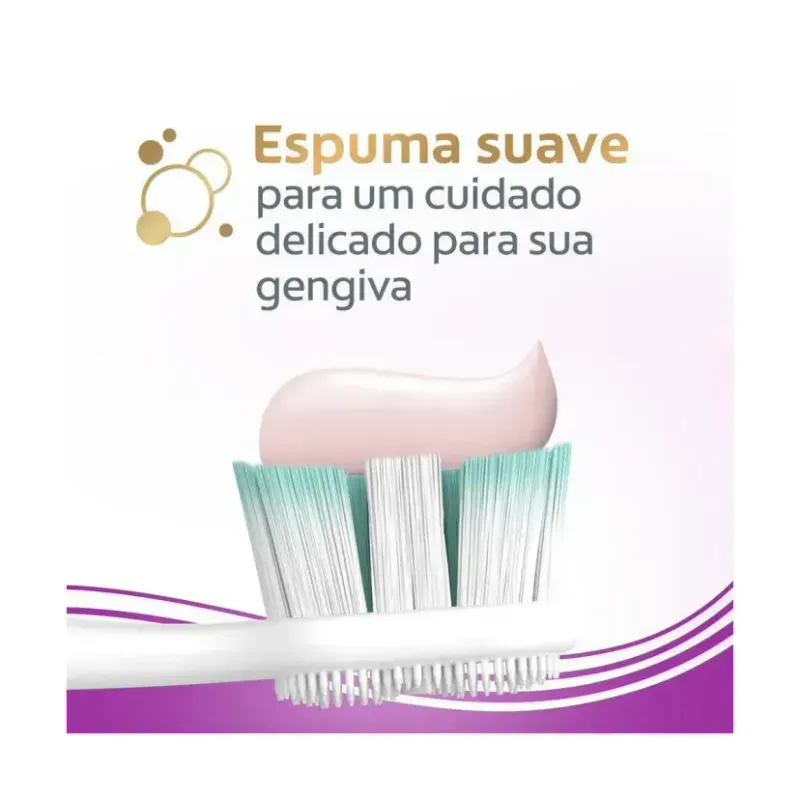 Inclui tecnologia patenteada com uma fórmula de espuma macia que limpa profundamente e é segura para evitar problemas como inchaço ou sangramento nas gengivas.