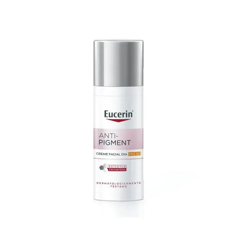 O Eucerin Anti-Pigment Dia FPS 30 é um creme facial de uso diário que reduz as manchas escuras no rosto, além de prevenir o desenvolvimento de hiperpigmentação ou o seu reaparecimento. Ainda, protege contra os raios UVA e UVB, uma vez que a exposição solar pode contribuir com o aparecimento das manchas.