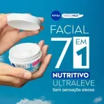 O Creme Facial Nutritivo Nivea é um hidratante que deixa a pele do rosto firme, macia e sem aspecto oleoso durante todo o dia. Contém hidro nutrientes que derretem ao entrar em contato com a pele, e ainda conta com Karité e Vitaminas, que juntas regulam o equilíbrio das células, protegendo a pele da perda de umidade.
