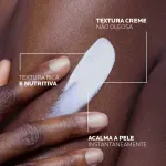 Sua textura cremosa, não oleosa e com Água Termal La Roche-Posay, é de rápida absorção e, quando aplicada na pele, forma uma película protetora sem deixar resíduos esbranquiçados, proporcionando sensação calmante e de hidratação, reparando a barreira da pele e evitando ressecamentos.