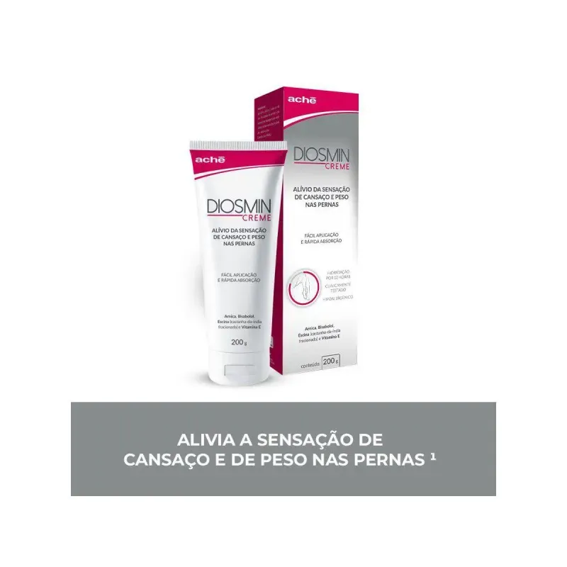 O Diosmin é um creme de uso diário desenvolvido especialmente para as pernas. Sua fórmula contém Arnica, Vitamina E, Bisabolol e Escina (Castanha da Índia fracionada) que, quando combinados, além de aliviar o inchaço, cansaço e peso nas pernas, e diminuir a sensação de cãibras noturnas e coceiras, também proporciona 12 horas de hidratação.