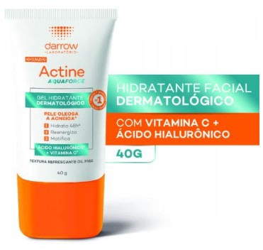 Gel hidratante facial. Darrow Actine Aquaforce é indicado para peles oleosas a acneicas, confere hidratação de até 48 horas e auxilia no controle da oleosidade.