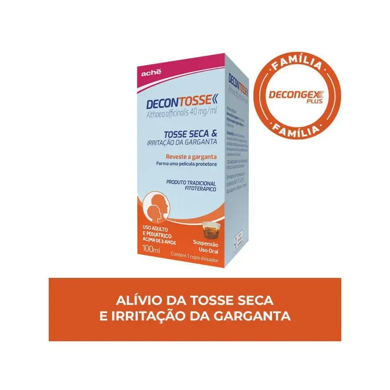 Decontosse é um medicamento tradicional à base de plantas utilizado como preparação emoliente para o tratamento sintomático da irritação oral ou faríngea e tosse seca associada.