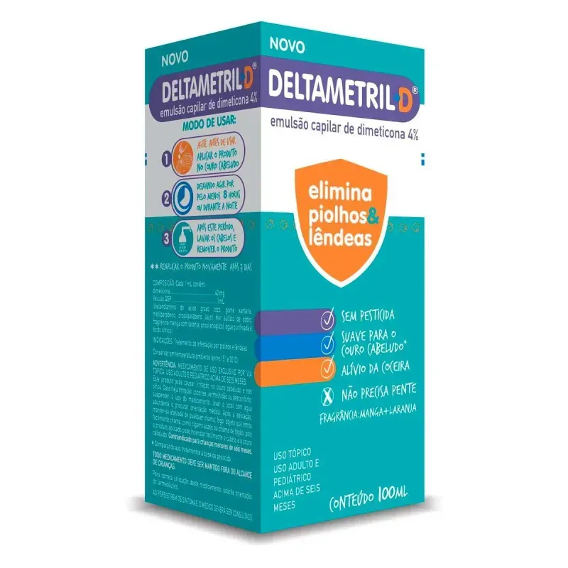 Deltametril é uma emulsão capilar com fórmula 5x mais eficaz, mais fluida com fragrância suave e agradável para o couro cabeludo. Sem necessidade de uso do pente fino, ele oferece mais praticidade na remoção do piolho, além de ser inofensivo para saúde capilar e não tem efeitos colaterais.