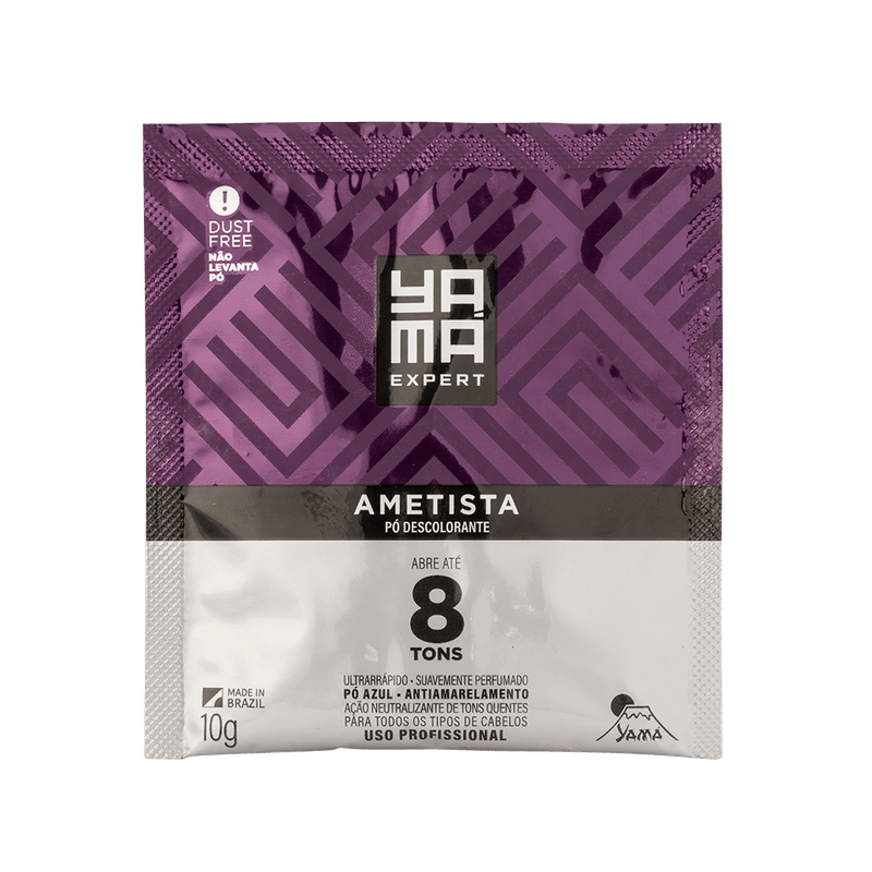 O Pó Descolorante Yamá Ametista é indicado para descolorir e neutralizar os tons dourados e acobreados da descoloração. Sua formulação inovadora é composta por uma mistura de pigmentos violetas e micropartículas de cristais de ametista, deixando o pó com tom Azul que neutraliza os tons quentes de dourado e cobre, minimizando o tom amarelado e melhorando o brilho dos cabelos. Abre até 8 Tons e não levanta pó durante a utilização, graças ao sistema Dust Free.