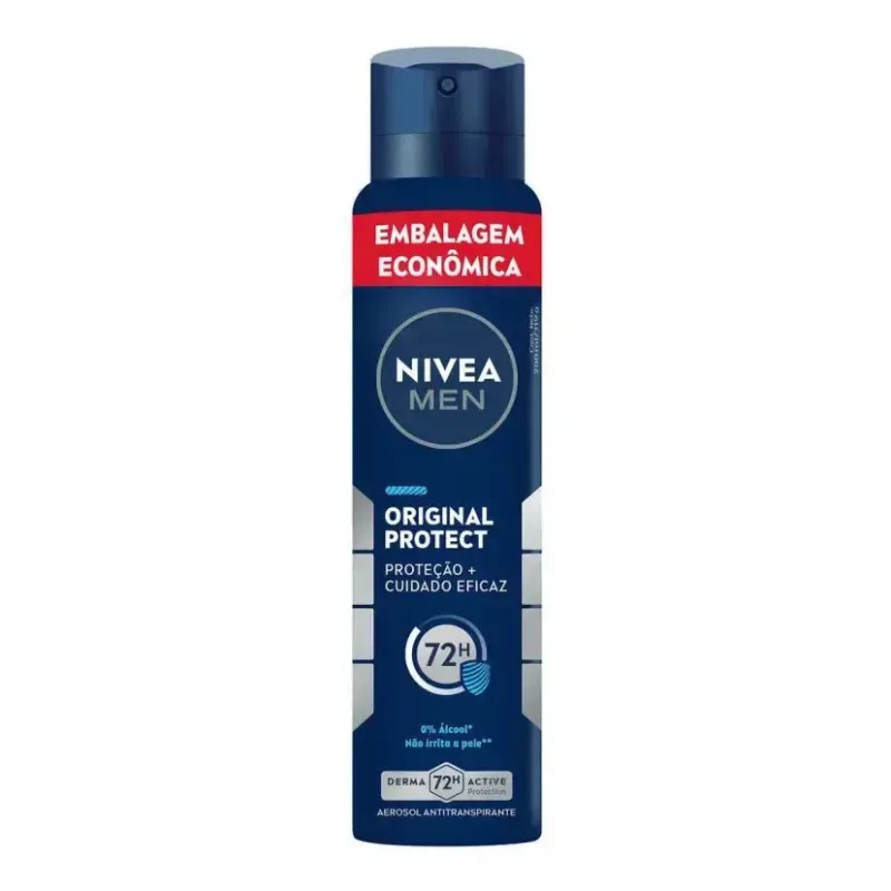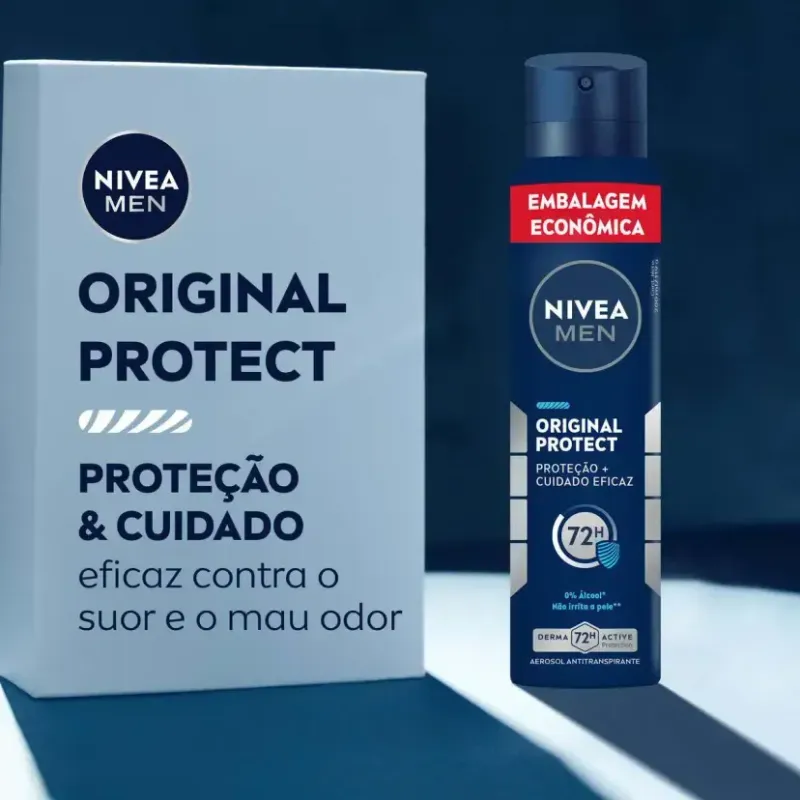 O Desodorante Nivea Men Original Protect Aerosol é um desodorante antitranspirante masculino desenvolvido com mais de 100 anos de expertise da NIVEA em cuidados com a pele. Sua função é proporcionar proteção eficaz contra o suor e o mau odor por até 72 horas, mantendo as axilas protegidas e com sensação de frescor durante todo o dia, seja no trabalho, em casa ou na prática de atividades físicas.