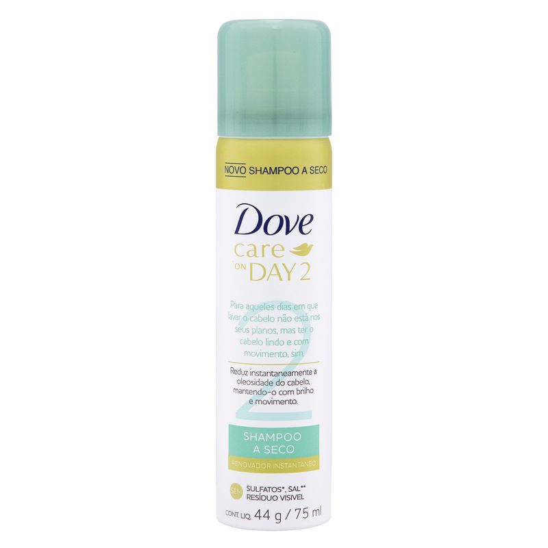 Um shampoo aliado para aqueles dias mais corridos, que você não teve tempo de lavar o seu cabelo, secar e finalizar. Dove Care On Day 2 é um shampoo a seco sem sal ou sulfatos, que tira a oleosidade superficial da raiz, deixando o cabelo renovado novamente, sem deixar resíduos. Indicado para todos os tipos de cabelo, até mesmo os secos, Dove Care On Day 2 devolve o brilho e movimento para os fios, sem precisar lavar. Tem o tamanho ideal para levar na bolsa ou durante uma viagem, para usá-lo quando e onde precisar, naqueles dias mais corridos ou mesmo depois da academia.