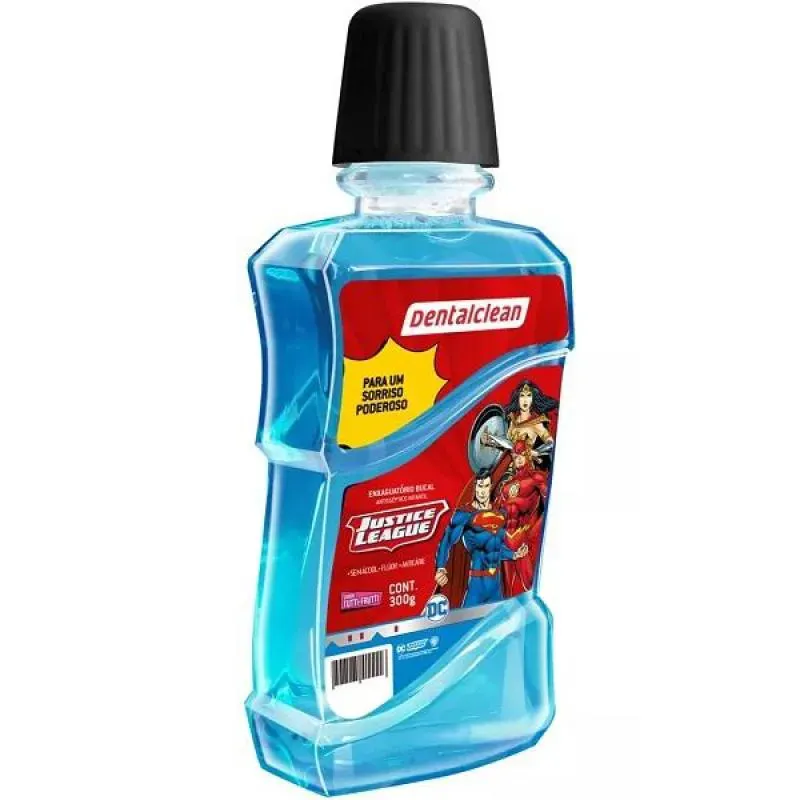 Enxaguante Bucal Infantil Antisseptico Zero Alcool Tutti Frutti Justice League Dentalclean 300Ml