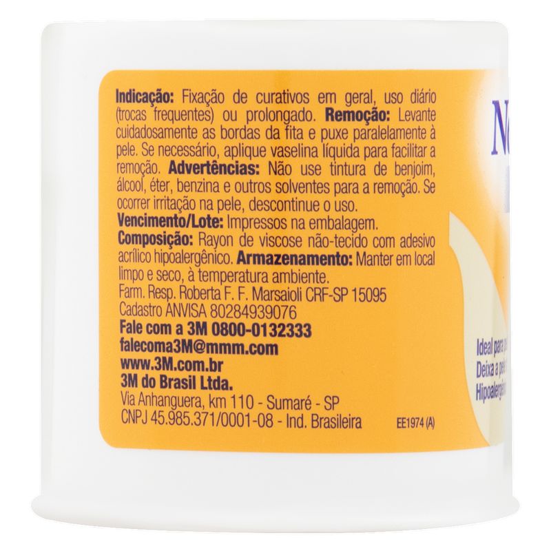 FITA MICROPORE NEXCARE BEGE 50MM X 4,5MA Fita Micropore Nexcare é uma fita microporosa que não deixa resíduos ou irritações na pele, por sua fácil remoção, ela é ótima para mudanças frequentes dos curativos ou gazes, sendo ideal para peles sensíveis.Ela não sai na água e é hipoalergênica. É flexível e perfeita para áreas difíceis de cobrir, garantindo conforto ao usuário. Além disso, ela corta facilmente no tamanho que você precisa. Trata se de um esparadrapo Micropore dermatologicamente testado que faz parte da linha completa de fitas médicas da 3M™, que alia uma variedade de soluções com alta qualidade e tecnologia. Experimente o esparadrapo Nexcare® que melhor atende à sua necessidade e sinta a diferença. Conheça este item indispensável em seu kit de primeiros socorros.USO: Lave as mãos com água e sabão. Seque as bem. Limpe a ferida como indicado pelo seu médico e cubra a com o curativo adequado. Rasgue ou corte um comprimento da Fita do rolo que é de 1 a 2 centímetros mais longo do que o curativo. Coloque uma tira em torno de cada bordo do penso. Se você estiver aplicando a Fita para diminuir cicatrizes depois de uma ferida cirúrgica, pode inicialmente aplicar a fita diretamente sobre a incisão que depois será eliminada pelo seu cirurgião; esta pode ser de duas semanas após o procedimento. Pressione a fita com firmeza na pele por dois a três segundos. Substitua a sempre que for preciso e use mais tiras de fita para reforçar o curativo, se necessário, entre as trocas de curativos. Se você estiver aplicando este produto para diminuir cicatrizes depois de uma ferida cirúrgica, mude a fita a cada 24 horas depois de tomar banho e secar cuidadosamente a incisão.