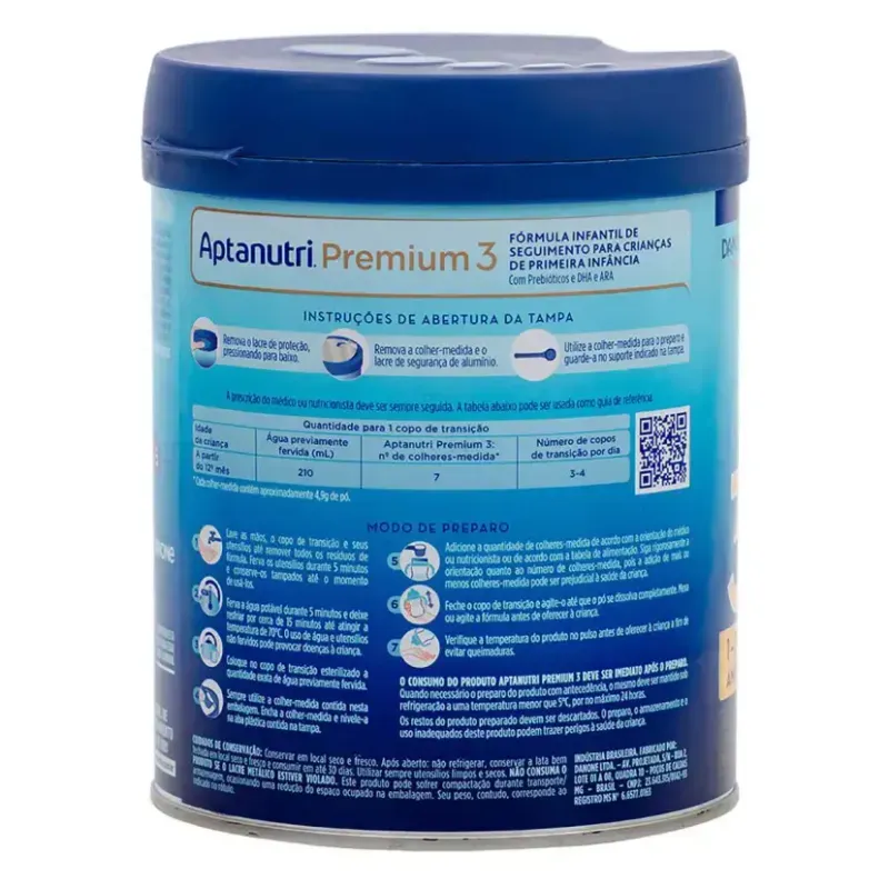 A Fórmula infantil Aptanutri Premium 3 foi criada para a alimentação de lactentes e crianças de primeira infância. Sua composição contém prebióticos (GOS/FOS), DHA e ARA, indispensáveis para o desenvolvimento das crianças.