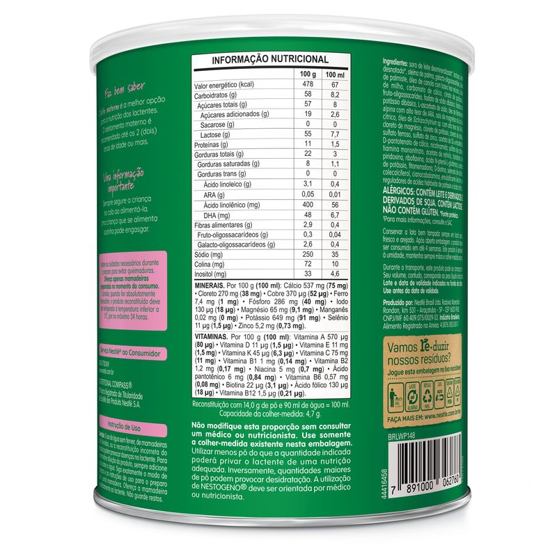 AVISO IMPORTANTE: ESTE PRODUTO SOMENTE DEVE SER USADO NA ALIMENTAÇÃO DE CRIANÇAS MENORES DE 1 (UM) ANO DE IDADE COM INDICAÇÃO EXPRESSA DE MÉDICO OU NUTRICIONISTA. O ALEITAMENTO MATERNO EVITA INFECÇÕES E ALERGIAS E FORTALECE O VÍNCULO MÃE-FILHO.