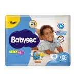• 48 unidades de fraldas descartáveis Babysec UltraSec Hiper Galinha Pintadinha XXG (mais de 13kg).