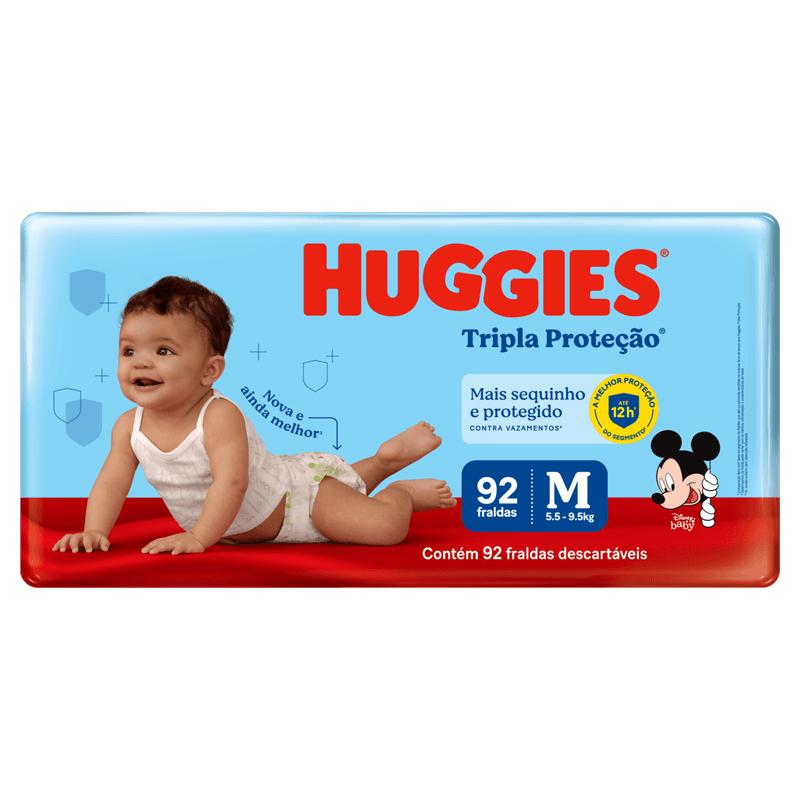Com proteção de até 12 horas, Huggies Tripla Proteção é uma fralda descartável para bebês com a exclusiva tecnologia Xtra-Protect, que, exclusivamente, oferece máxima proteção e absorção por toda a noite, a partir de suas barreiras antivazamentos 20x mais altas.