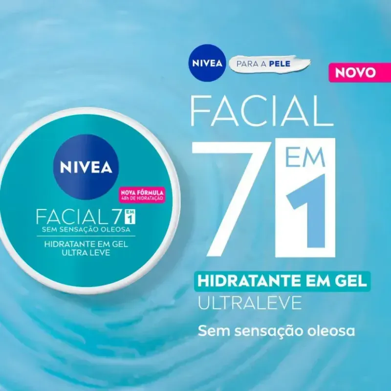 Gel Nivea é um hidratante facial oil-free (100% livre de óleos em sua fórmula), com alto poder de hidratação e sensação refrescante para a sua pele. Especialmente desenvolvido para a pele oleosa, conta com Ácido Hialurônico e Pepino, ingredientes que ajudam a manter a elasticidade e maciez da pele, deixando-a luminosa, revitalizada e hidratada.