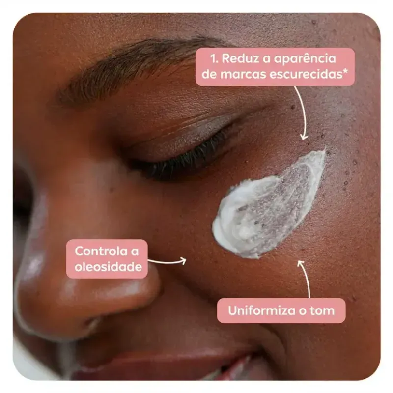 Com uma fórmula que traz ácido hialurônico, extrato de pérolas e cúrcuma, o creme Nivea Beleza Radiante para Pele Negra oferece 7 benefícios em 1. São eles:
