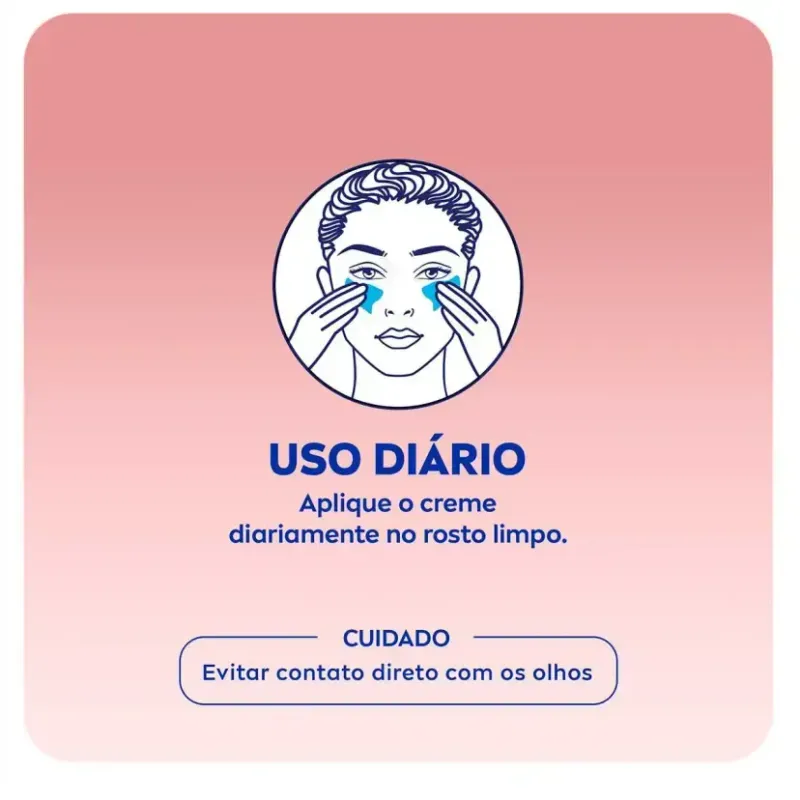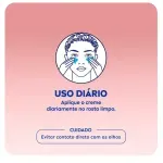 Aplique o creme diariamente no rosto limpo, evitando contato com os olhos.