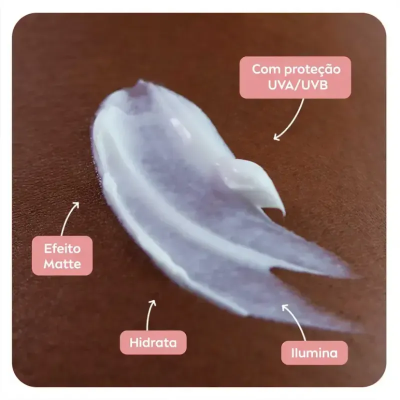 • Uniformiza o tom de pele, ilumina e hidrata.