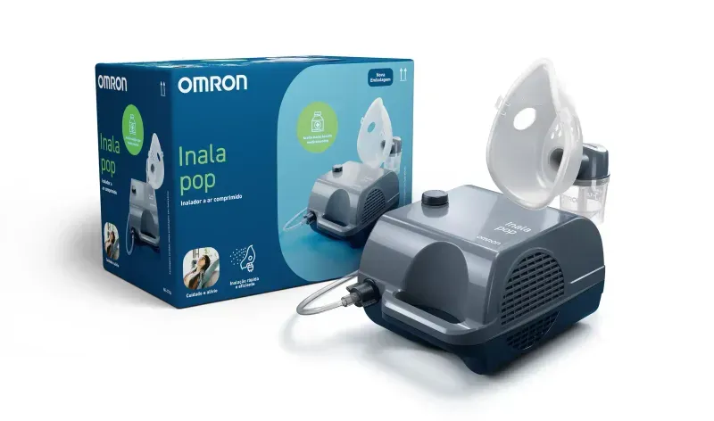 Resultado de pesquisas e constante desenvolvimento técnico, o inalador Omron InalaPop é indicado para o tratamento de sinusite, asma, pneumonia, bronquite, entre outros problemas relacionados às vias aéreas superiores.
