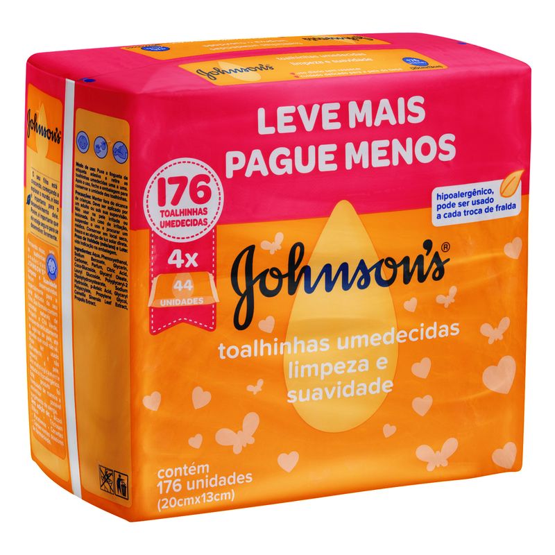 As toalhinhas umedecidas Johnson's foram desenvolvidas especialmente para a pele delicada do bebê.Sua fórmula contém extrato de própolis e chá verde, removendo delicadamente as sujeiras da pele, até aquelas que não podem ser vistas. Pode ser usado diramente, e não resseca a pele. Dermatologicamente testado e hipoalergênico