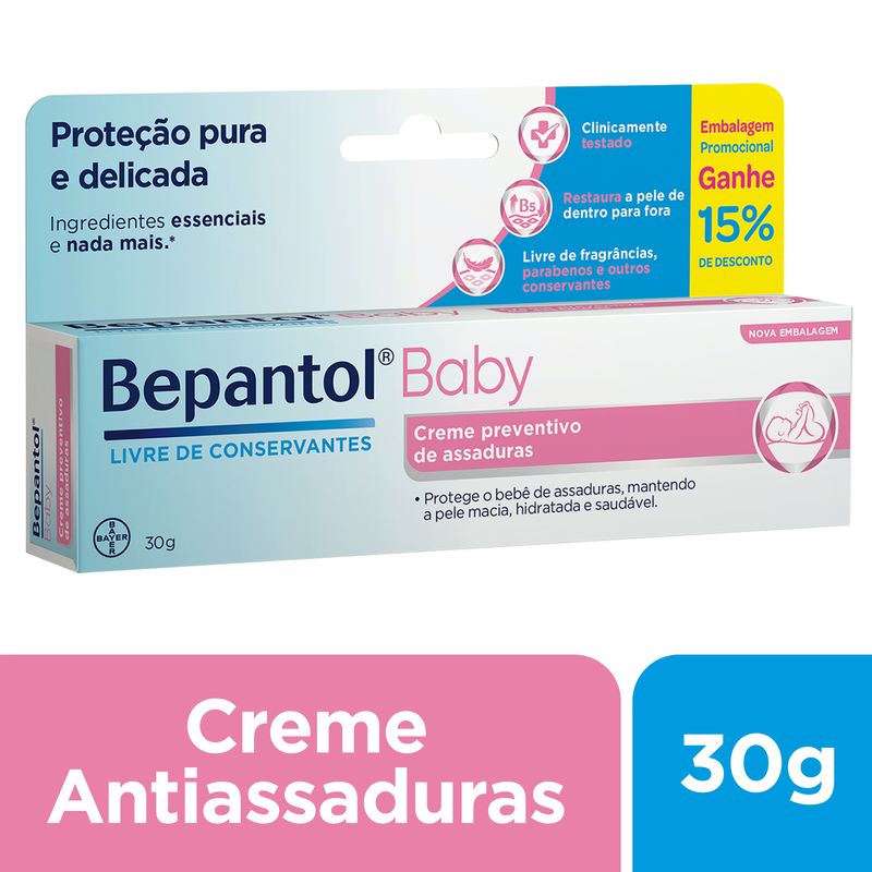 Além disso, Bepantol Baby é uma pomada livre de perfumes, corantes e parabenos que podem sensibilizar a pele delicada do bebê.