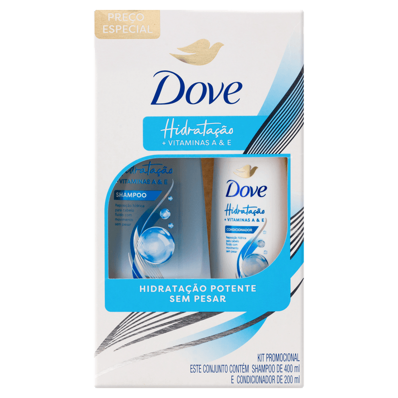 Kit Dove Hidratação + Vitaminas A & E Shampoo 400ml + Condicionador 200mlO Kit contém: