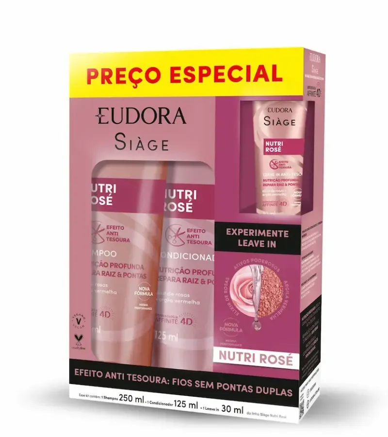 O que é o Kit Siàge Eudora Nutri Rosé shampoo + condicionador + Leave-in?