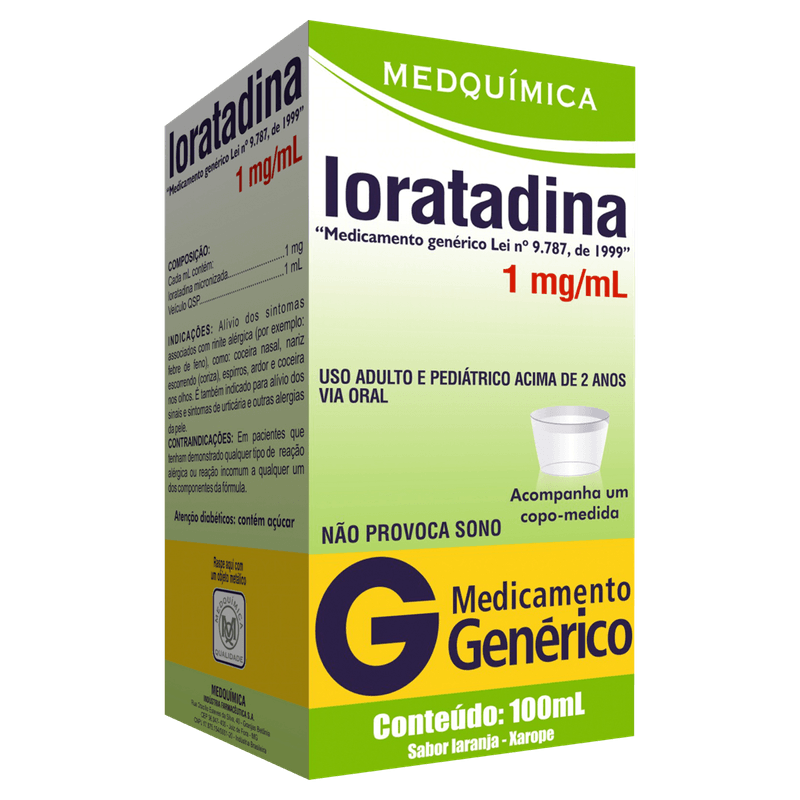 MedicamentosAntialergicoLoratadina 1mg/ml Sabor Laranja Xarope 100ml