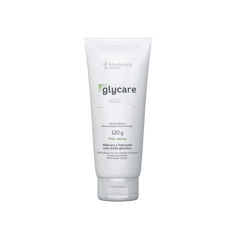 Mantecorp Glycare Duo 120g Mantecorp Glycare Duo 120g é um sabonete de uso diário para a limpeza profunda da pele. Ele também pode ser usado como máscara facial semanal para intensificar e melhorar a textura e uniformidade da pele. Indicação:Imdicado para todos os tipos de peles. Benfícios:• Fórmula exclusiva com Ácido Glicólico + Niacinamida;• Limpeza profunda;• Aumenta a renovação celular;• Controle da oleosidade;• Melhora na uniformidade do tom da pele; • Auxilia na redução da acne, lesões inflamatórias e comedões. Modo de Usar:Sabonete: aplique sobre a pele umedecida uma ou duas vezes ao dia, ou a critério médico, massageando suavemente. Em seguida, enxágue com água abundante.Máscara: aplique uma camada generosa sobre a pele seca, massageando levemente até a formação de uma máscara uniforme, deixe agir por 5 minutos e remova com água abundante. Utilize uma vez por semana. Composição:Ácido Glicólico em Matriz Nano 3D: Dessa forma haverá uma entrega prolongada do ativo, que é um importante agente de renovação celular, proporcionando controle da oleosidade e uniformização da pele. Niacinamida: redução da oleosidade, hidratação, agente clareador, reduz quantidade de sebo da pele. GTIN: