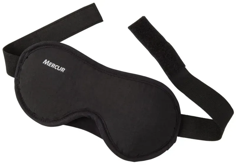 Possui formato anatômico. A parte interna, confeccionada em tecido e estofada em espuma, proporciona um toque macio, garantindo conforto para a região dos olhos. Possui faixa elástica com ajuste em fecho aderente, que firma a máscara sem causar pressão excessiva.